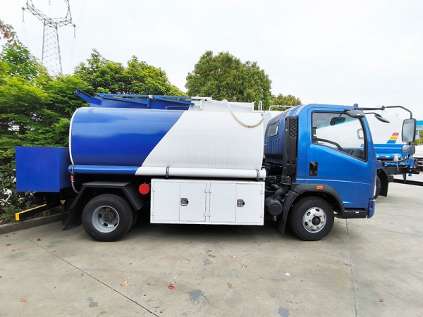 5 cubic meters fuel tank truck with dual compartments and two dispensers