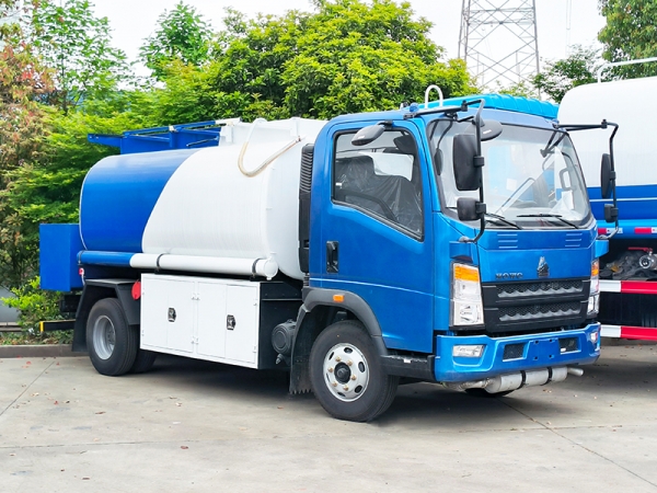 5 cubic meters fuel tank truck with dual compartments and two dispensers