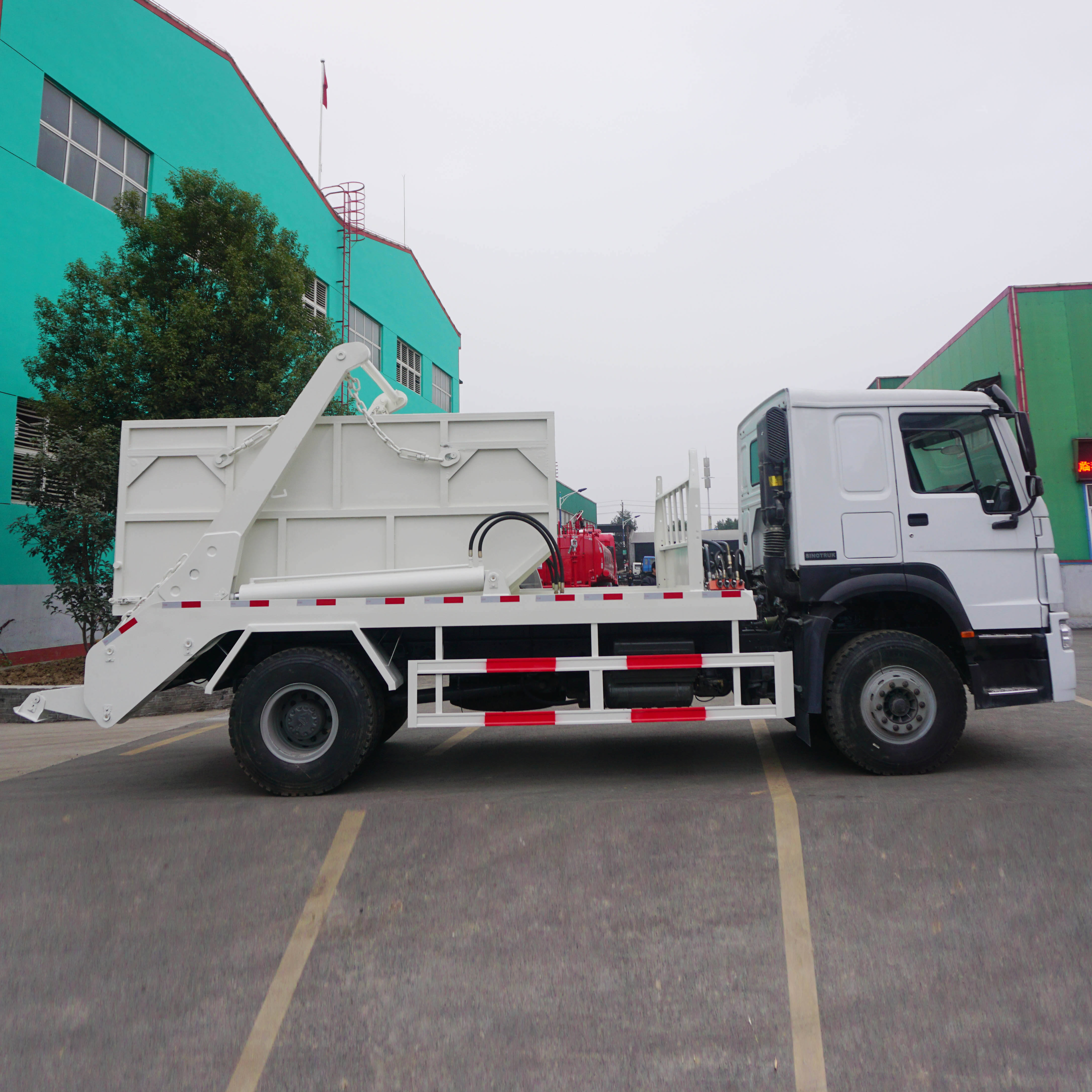 Most Popular Howo 4x2 Hydraulic Swing Arm Roll Garbage Truck 10cbm Skip Lifting Garbage Can Vehicle