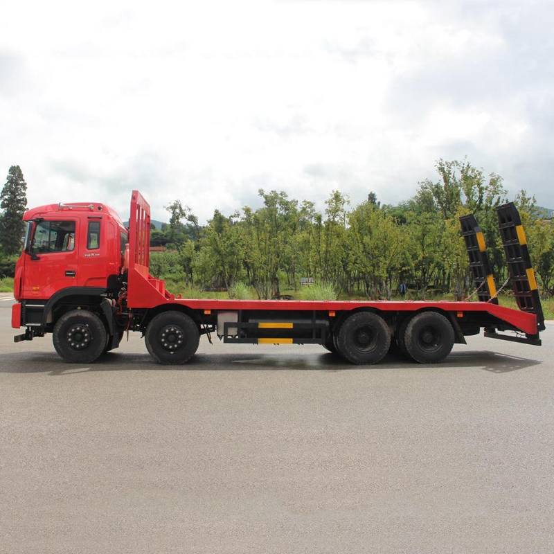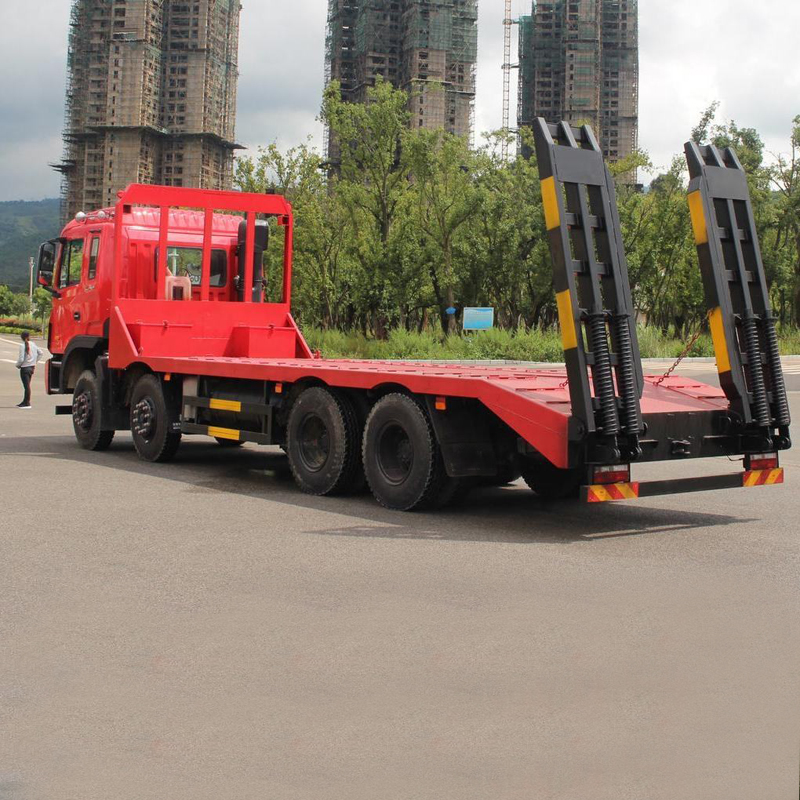 Durable 25-ton 8x4 Flatbed Truck with Rear Ladder, Suitable for Excavator and Loader Transportation